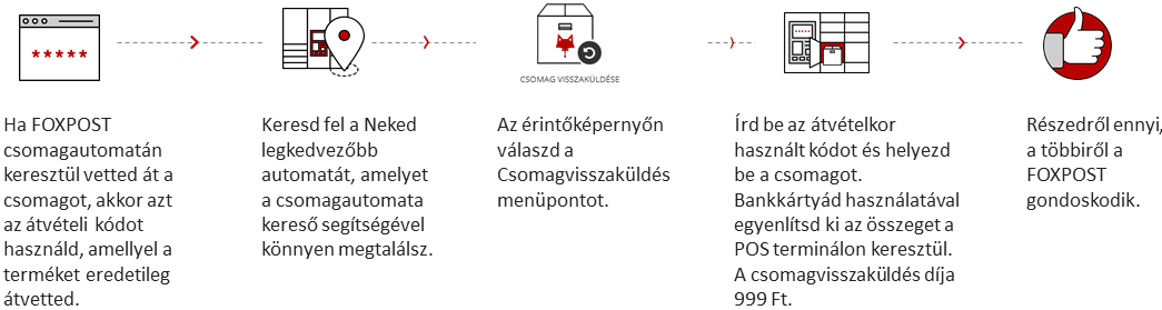 A CSOMAGVISSZAKÜLDÉS használatával vásárlói csomagautomata-hálózatunk segítségével az ország bármely FOXPOST automatáján keresztül, néhány kattintással, címkenyomtatás és futárral való egyeztetés nélkül visszaküldhetik megrendeléseiket.